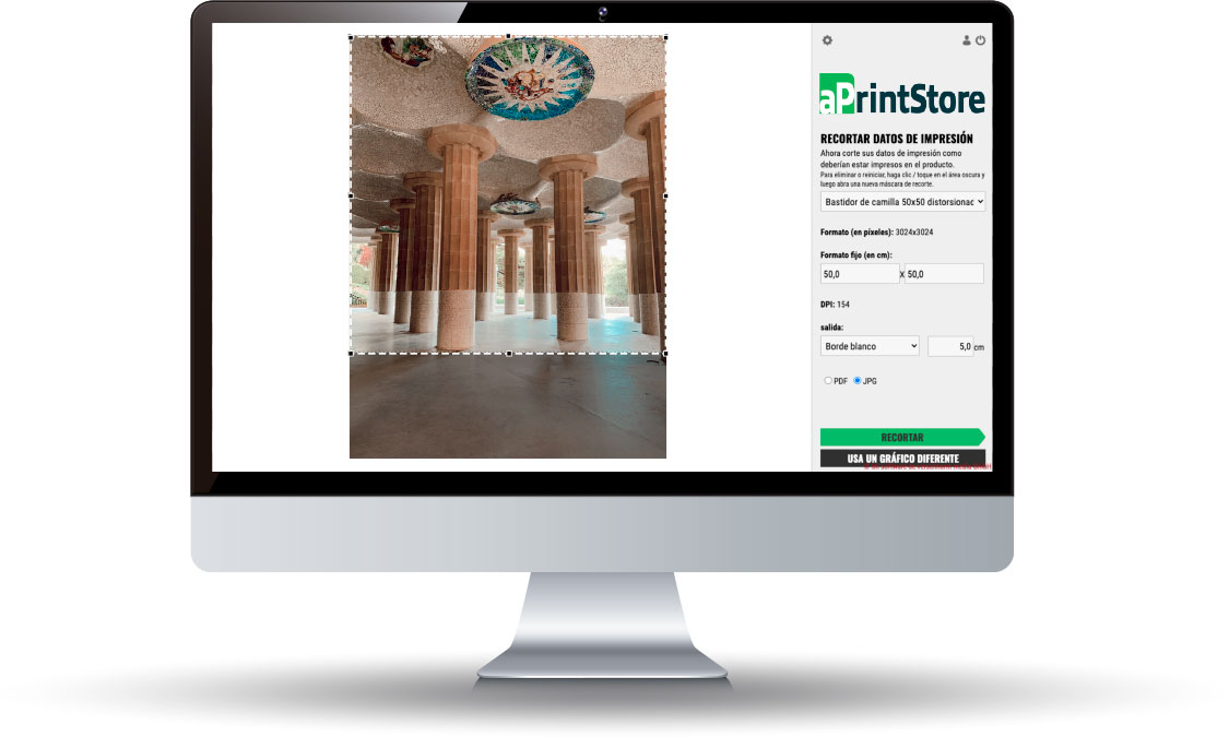 Bearbeite Dateien für den Druck auf Leinwand, wobei die Kanten im Reflexionsmodus gedruckt werden, um dem Bild mehr Tiefe zu verleihen.